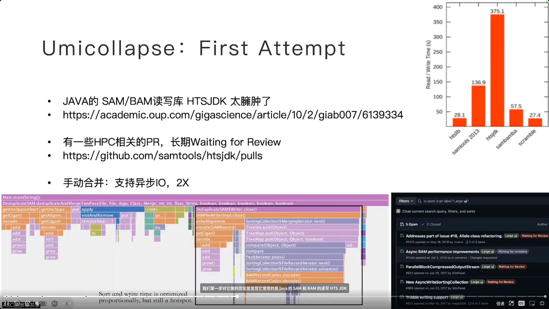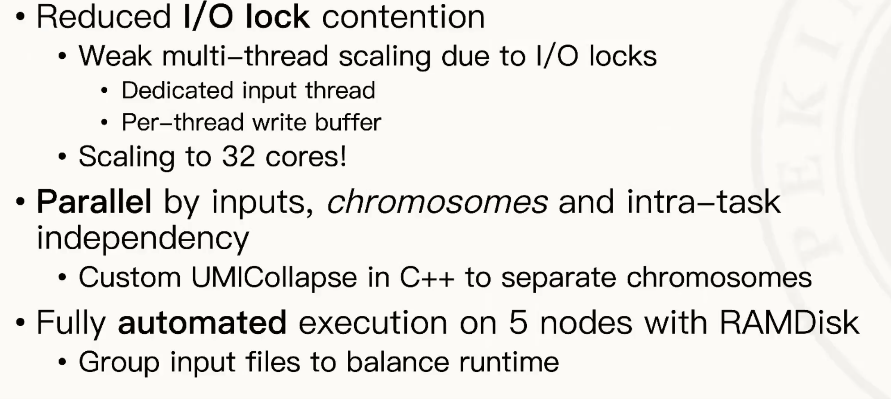 - 我们对于原始的代码进行了简单的评估,我们发现从计算量上来说,整个工作流从上游到下游,它计算量是逐渐减小的,因为数据规模在减小,但是我们发现它的运行时间反而是在逐渐增大的,那么这就说明一个什么问题?越是下游的工作步骤,它的代码所谓的 HPC 质量就是在写代码的时候,对于这个高性能的考虑,其实越是下游是越少的,所以它的优化潜力是越大的。