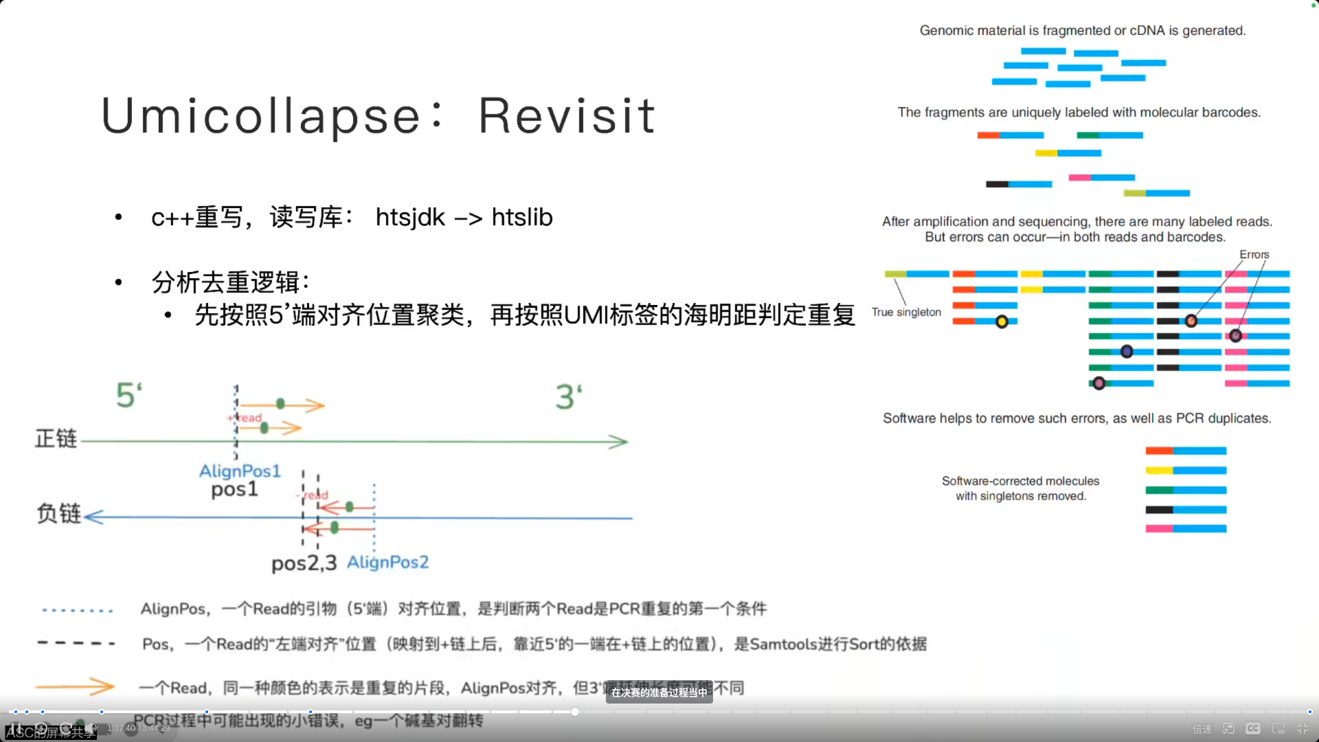 - UMI 标签在复制+扩增的过程中,有些碱基会翻转,会计算海明距离来判定重复